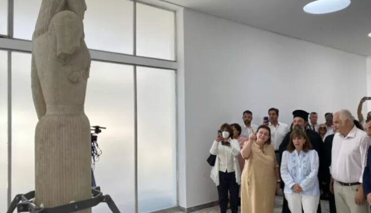 Όπως δήλωσε η κ. Σακελλαροπούλου: «Χθες βρέθηκα, με ιδιαίτερη συγκίνηση, στα εγκαίνια του εξαιρετικού έργου αποκατάστασης της Επισκοπής στη Σίκινο. Σήμερα, ανταποκρινόμενη πρόθυμα, με χαρά μπορώ να πω, στην πρόταση του δημάρχου Θήρας και της υπουργού Πολιτισμού, βρίσκομαι εδώ, στη Σαντορίνη, όπου, 22 χρόνια μετά την ανακάλυψή του, εκτίθεται για πρώτη φορά στο κοινό το εξαιρετικής ομορφιάς άγαλμα της Αρχαϊκής Περιόδου «Κόρη της Θήρας».