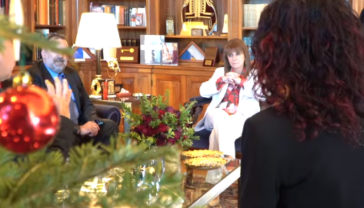 «Οι αίθουσες του Προεδρικού Μεγάρου, που δέχονται ξανά επισκέψεις σχολείων, πολιτιστικών και κοινωνικών συλλόγων, καθώς και άλλων φορέων, άνοιξαν για μαθητές και μαθήτριες από το Ειδικό Γυμνάσιο και Λύκειο Κωφών και Βαρηκόων της Αγίας Παρασκευής. Έφηβοι γεμάτοι περιέργεια και ενδιαφέρον περιηγήθηκαν στους χώρους του Μεγάρου, σε μια ξενάγηση που έγινε για πρώτη φορά με διερμηνεία στη νοηματική γλώσσα.