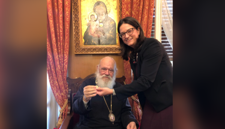 Στην υπουργό Παιδείας και Θρησκευμάτων, Νίκη Κεραμέως «έπεσε» το φλουρί της βασιλόπιτας της Αρχιεπισκοπής Αθηνών, την οποία έκοψε ο Αρχιεπίσκοπος Ιερώνυμος.