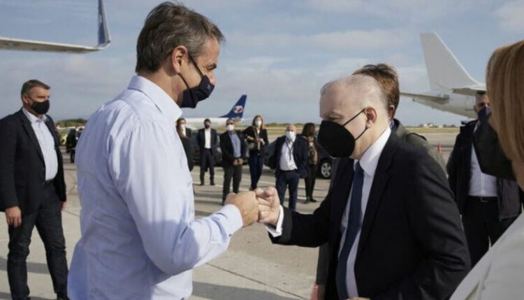 Τον πρωθυπουργό υποδέχτηκαν στη μαρίνα ο Υπουργός Ανάπτυξης και Επενδύσεων Άδωνις Γεωργιάδης ο Υπουργός Τουρισμού Βασίλης Κικίλιας, ο Περιφερειάρχης Νοτίου Αιγαίου Γιώργος Χατζημάρκος, ο Δήμαρχος Ρόδου Αντώνης Καμπουράκης και οι βουλευτές Δωδεκανήσου της Νέας Δημοκρατίας Μάνος Κόνσολας, Βασίλης Υψηλάντης, Μίκα Ιατρίδη και Γιάννης Παππάς.