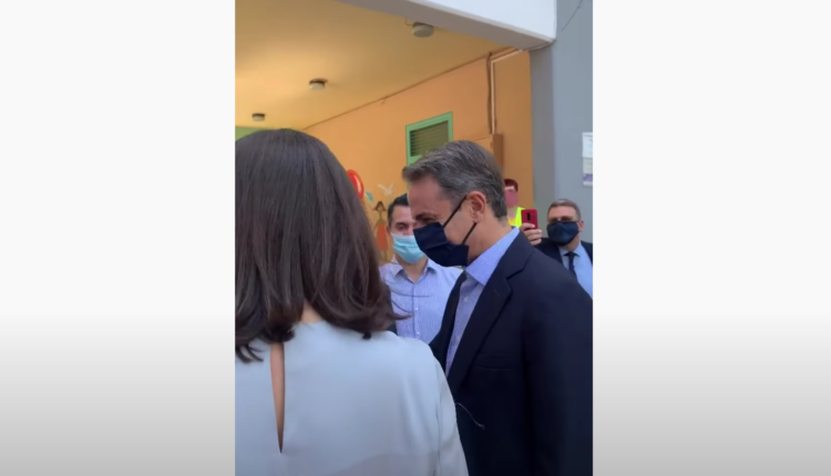 Ο πρωθυπουργός κατέφθασε στο σχολείο φορώντας μάσκα, συνοδεία της υπουργού Παιδείας Νίκης Κεραμέως. Μία από τις δασκάλες έκανε θερμομέτρηση στον κ. Μητσοτάκη και στη συνέχεια ο πρωθυπουργός συνομίλησε με τους μικρούς μαθητές.