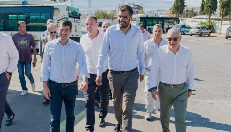 Κατά τη διάρκεια της παρουσίας του ο Γραμματέας της ΠΕ ΝΔ περιηγήθηκε στο χώρο του αμαξοστασίου και του μηχανουργείου συναντώντας εργαζομένους με τους οποίους συνομίλησαν για τα ζητήματα που αντιμετωπίζουν, την αύξηση του στόλου των λεωφορείων και των δρομολογίων αλλά και την αναγκαιότητα για την πρόσληψη περισσότερου προσωπικού, τόσο οδηγών, όσο και εργαζομένων ειδικοτήτων (πχ μηχανικών).