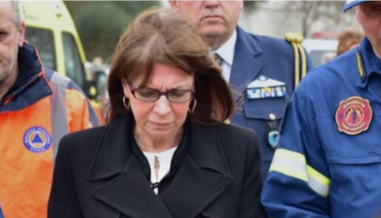 H Πρόεδρος της Δημοκρατίας, Κατερίνα Σακελλαροπούλου, βρέθηκε το μεσημέρι της Τρίτης στο σημείο της τραγωδίας στα Τέμπη.