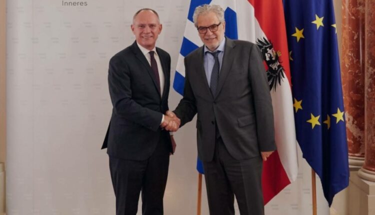 Ο υπουργός συναντήθηκε με την υπουργό Καγκελαρίας για Ευρωπαϊκές και Συνταγματικές Υποθέσεις Karoline Edstadler και τον υπουργό Εσωτερικών Gerhard Karner και στο επίκεντρο των συζητήσεών τους βρέθηκαν θέματα ενίσχυσης της συνεργασίας των δύο χωρών στην αντιμετώπιση των επιπτώσεων της κλιματικής κρίσης και της πολιτικής προστασίας.