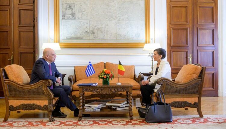 Σε κοινές δηλώσεις μετά το πέρας της συνάντησής τους στην Αθήνα, ο Νίκος Δένδιας ευχαρίστησε την υπουργό Εξωτερικών του Βελγίου για τη θέση αρχών την οποία τηρεί το Βέλγιο και στο διμερές πλαίσιο, αλλά και στο πλαίσιο της ΕΕ, του ΝΑΤΟ και του ΟΗΕ.