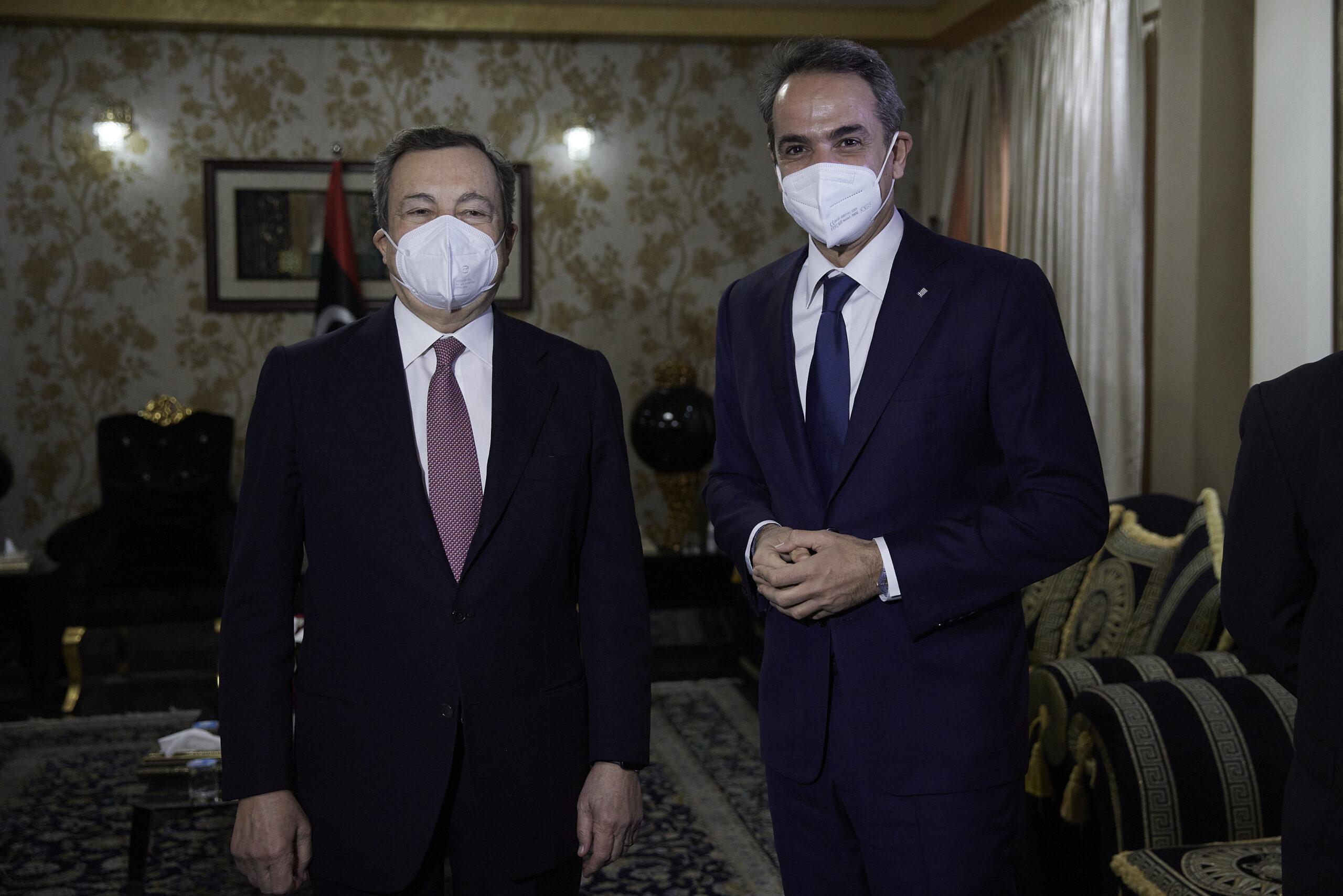 Κατά την άφιξή του στην Τρίπολη ο Πρωθυπουργός Κυριάκος Μητσοτάκης είχε συνάντηση με τον Ιταλό Πρωθυπουργό, Mario Draghi, καθώς είναι από τους πρώτους ηγέτες της ΕΕ που -με διαφορά λίγων ωρών, επισκέπτονται τη Λιβύη.
