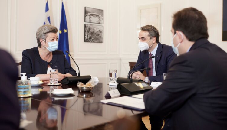 Με την Ευρωπαία Επίτροπο, αρμόδια για Εσωτερικές Υποθέσεις, Ylva Johansson, συναντήθηκε ο Πρωθυπουργός Κυριάκος Μητσοτάκης στο Μέγαρο Μαξίμου.