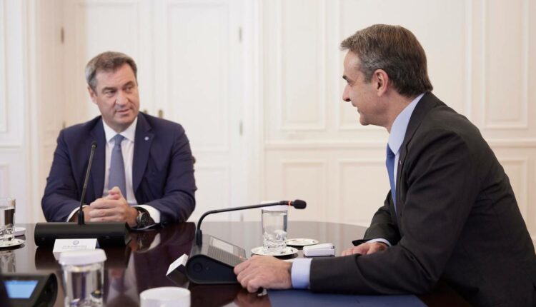 Ο Πρωθυπουργός Κυριάκος Μητσοτάκης συναντήθηκε το πρωί, στο Μέγαρο Μαξίμου, με τον Πρωθυπουργό της Βαυαρίας Markus Söder, στο πλαίσιο επίσκεψης Αντιπροσωπείας του Βαυαρικού Κοινοβουλίου.
