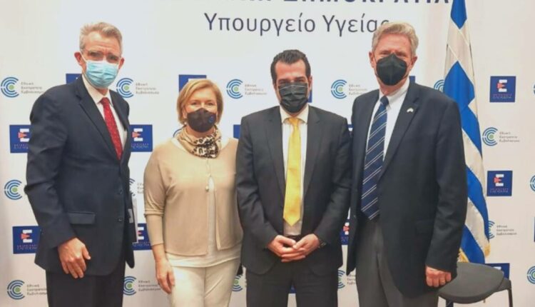 Mε τον πρέσβη των Ηνωμένων Πολιτειών Αμερικής Τζέφρι Πάιατ και αντιπροσωπεία του Κογκρέσου με τον πρόεδρο Φρανκ Παλόνε στο πλαίσιο της στενής συνεργασίας των δύο χωρών στον τομέα της Υγείας, συναντήθηκαν σήμερα στο υπουργείο Υγείας ο υπουργός Υγείας Θάνος Πλεύρης και η αναπληρώτρια υπουργός Υγείας Μίνα Γκάγκα.