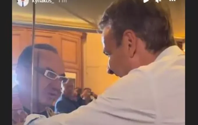 Στη διάρκεια της βόλτας, ο κ. Μητσοτάκης συναντήθηκε τυχαία με τον γνωστό τραγουδιστή Λευτέρη Πανταζή, ο οποίος βρίσκεται στην Θεσσαλονίκη για συναυλία την Κυριακή.