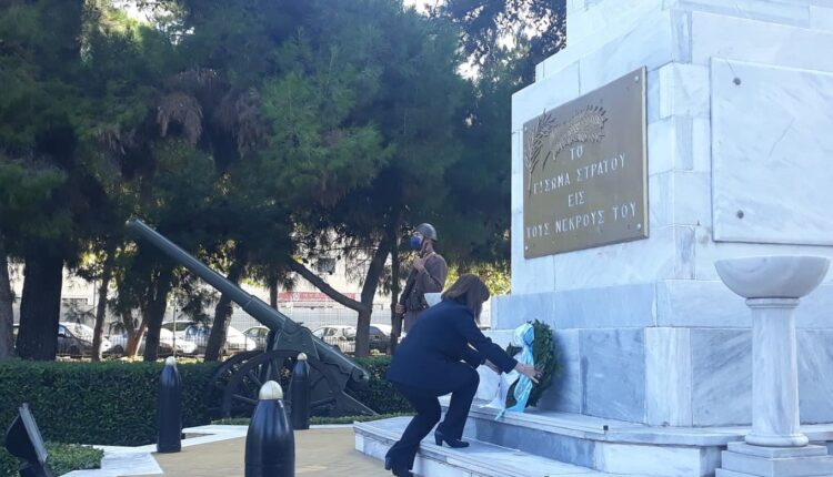 Στεφάνι στο Ηρώο του Γ’ Σώματος Στρατού, στη Θεσσαλονίκη, κατέθεσε σήμερα το πρωί, ανήμερα της επετείου της 28ης Οκτωβρίου, η Πρόεδρος της Δημοκρατίας, Κατερίνα Σακελλαροπούλου.