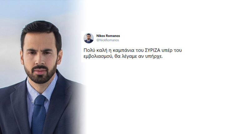 Θέλοντας να επικρίνει τη στάση του ΣΥΡΙΖΑ όσον αφορά την τακτική που έχει ακολουθήσει από την αρχή της πανδημίας και ιδιαίτερα κατά τη διάρκεια της διαδικασίας του εμβολιασμού, ο Νίκος Ρωμανός ανέβασε στον λογαριασμό του στο twitter ένα tweet με χιουμοριστικό ύφος, αλλά ταυτόχρονα επέκρινε και την αντιπολίτευση.