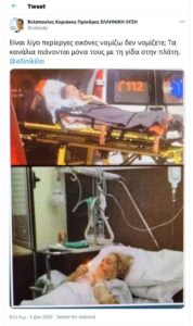 Ο πρόεδρος του κόμματος “Ελληνική Λύση”, Κυριάκος Βελόπουλος, ανάρτησε στον προσωπικό του λογαρισμό στο twitter, παλιές φωτογραφίες από το εξωτερικό, άσχετες με την πανδημία, ως σχετικές με αυτή.