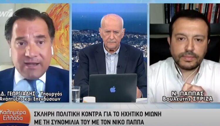 Εκρηκτικό το κλίμα στην τηλεοπτική συνάντηση του Υπουργού Ανάπτυξης και Επενδύσεων, Άδωνι Γεωργιάδη με τον Βουλευτή ΣΥΡΙΖΑ Νίκο Παππά.