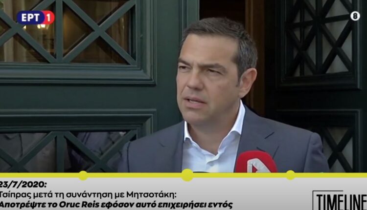 Μεταξύ άλλων ο Αλέξης Τσίπρας μετά τη συνάντηση με Μητσοτάκη δήλωσε: «Αποτρέψτε το Oruc Reis σε περίπτωση που αυτό επιχειρήσει εντός της ελληνικής υφαλοκρηπίδας».