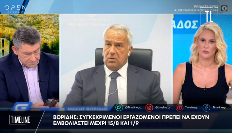 Για το τι θα ισχύσει για τους ανεμβολίαστους εργαζόμενους στον χώρο της υγείας απάντησε ο υπουργός Εσωτερικών Μάκης Βορίδης, δίνοντας συγκεκριμένες ημερομηνίες για τις δύο κατηγορίες εργαζομένων που υπόκεινται σε υποχρεωτικό εμβολιασμό.