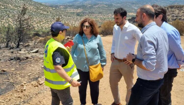 Στη συνέχεια τα στελέχη του ΠΑΣΟΚ-ΚΙΝΑΛ επισκέφτηκαν την πληγείσα περιοχή για να δουν και από κοντά το μέγεθος καταστροφής και διαπίστωσαν ότι η πυρκαγιά, που φαίνεται να ξεκίνησε από εγκαταστάσεις του ΔΕΔΔΗΕ στη Γλυφάδα, επεκτάθηκε πολύ γρήγορα επειδή η γύρω περιοχή δεν ήταν καθαρισμένη από τα ξερά χόρτα.