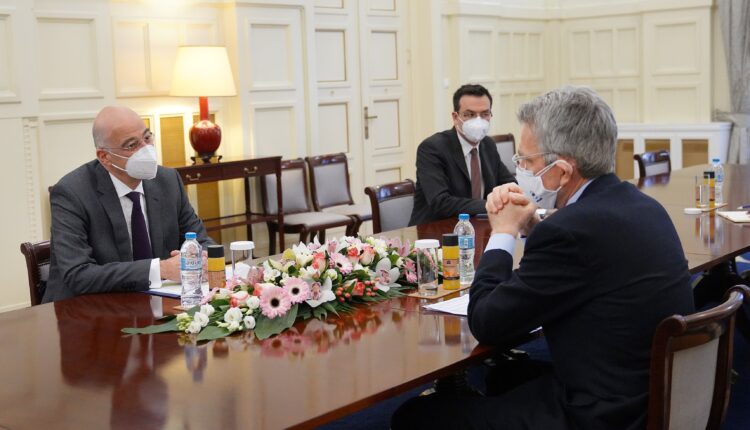 Κατά τη διάρκεια συνάντησής τους σήμερα στο Υπ.Εξωτερικών, ο ΥΠΕΞ @NikosDendias & ο Πρέσβης ΗΠΑ @USAmbPyatt συζήτησαν τις άριστες σχέσεις & τη διαρκώς ενισχυόμενη στρατηγική συνεργασία ??&??. Στο επίκεντρο και οι πρόσφατες εξελίξεις σε Αν.Μεσόγειο & ευρύτερη περιοχή https://t.co/dBPXpFByjF
