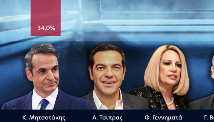 Ο Κυριάκος Μητσοτάκης εξακολουθεί να έχει την πρωτιά στη δημοφιλία ανάμεσα στους πολιτικούς αρχηγούς και δη απέναντι στον Αλέξη Τσίπρα. Η μεταξύ τους διαφορά είναι στις 9,5 μονάδες, δηλαδή ποσοστά 34% έναντι 24,5% αντιστοίχως.