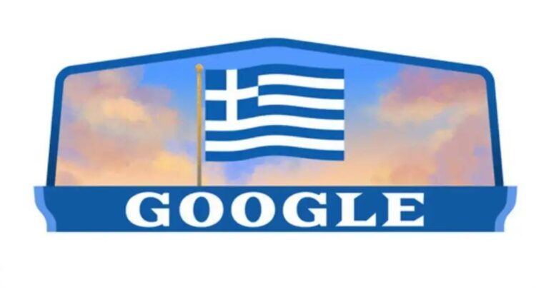 Η ελληνική σημαία και το μπλε χρώμα συνθέτουν το σημερινό ειδικό επετειακό doodle.