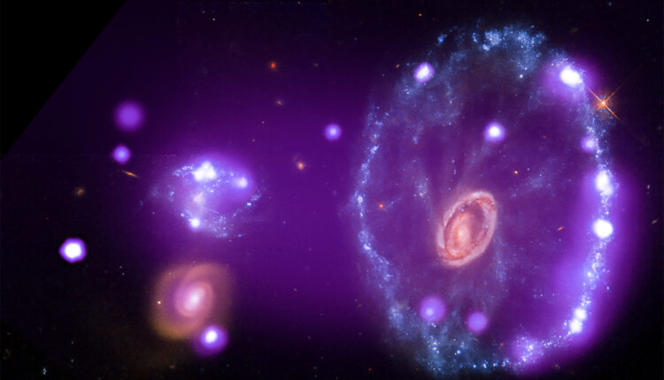 Η NASA δημοσιοποίησε σήμερα μια σπάνια και εντυπωσιακή εικόνα ενός γαλαξία που απέχει 500 εκατομμύρια έτη φωτός μακριά από τη Γη, του γαλαξία Cartwheel, του οποίου οι δακτύλιοι απαθανατίζονται με πρωτοφανή ευκρίνεια χάρη στο υπερσύγχρονο διαστημικό τηλεσκόπιο James Webb.
