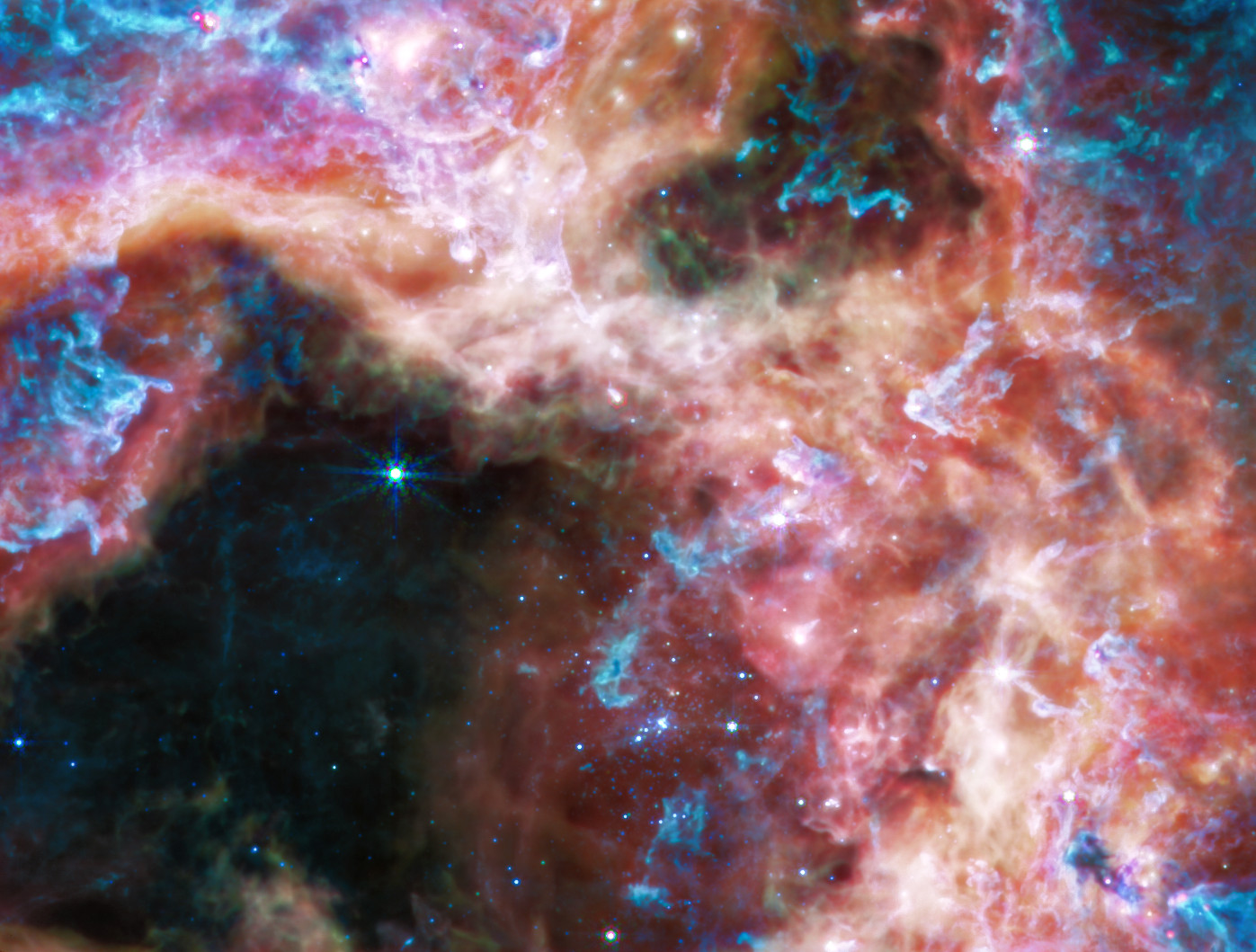 Χιλιάδες νεαρά άστρα που παρέμεναν αθέατα μέχρι σήμερα γίνονται για πρώτη φορά ορατά χάρη στο διαστημικό τηλεσκόπιο James Webb, το οποίο έστρεψε τα υπέρυθρα μάτια του σε ένα κοσμικό μαιευτήριο που οι αστρονόμοι ονομάζουν Νεφέλωμα της Ταραντούλας.