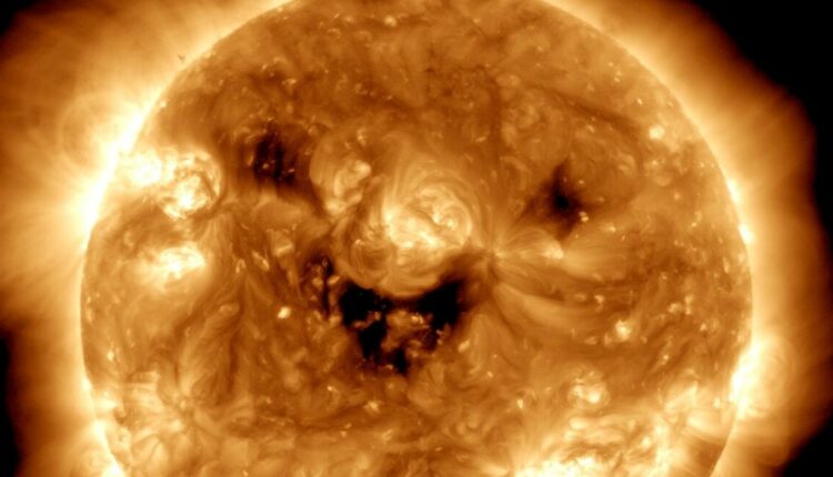 Δορυφόρος της NASA κατέγραψε νωρίτερα αυτή την εβδομάδα εικόνα του Ήλιου, η οποία εμφανίζει ένα μοτίβο που μοιάζει με χαρούμενο πρόσωπο.