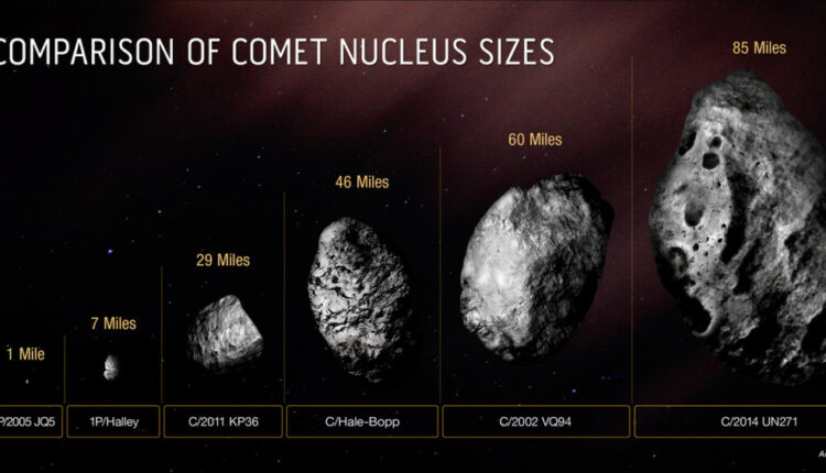 Ο γιγάντιος κομήτης C/2014 UN271, γνωστότερος ως «Μπερναντινέλι-Μπερνστάιν» από τα ονόματα των αστρονόμων που τον ανακάλυψαν, είναι πραγματικά ο μεγαλύτερος που έχει ποτέ βρεθεί, επιβεβαίωσαν πέντε φωτογραφίες του διαστημικού τηλεσκοπίου Χαμπλ (Hubble), όπως ανακοίνωσε η Αμερικανική Διαστημική Υπηρεσία (NASA).