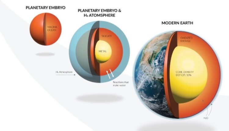 Χρησιμοποιώντας ένα νέο μοντέλο, οι ερευνητές του Ινστιτούτου για την Επιστήμη Κάρνεγκι στις ΗΠΑ και του Πανεπιστημίου της Καλιφόρνιας (UCLA) μπόρεσαν να αποδείξουν ότι στις αρχές της ύπαρξης της Γης, οι αλληλεπιδράσεις μεταξύ του ωκεανού μάγματος και μιας πρωτο-ατμόσφαιρας μοριακού υδρογόνου θα μπορούσαν να έχουν προκαλέσει ορισμένα από τα χαρακτηριστικά της Γης, όπως η αφθονία νερού.