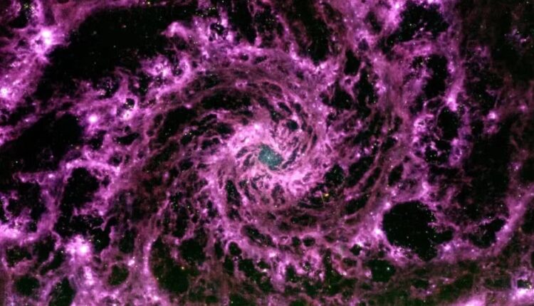 Το διαστημικό τηλεσκόπιο James Webb, που έχει ήδη συγκλονίσει την ανθρωπότητα με τις εικόνες που καταγράφει, έστρεψε το κάτοπτρό του σε έναν μεγάλο σπειροειδή γαλαξία, τον NGC 628 ή M74, και κατέγραψε την αστρική σκόνη που περιβάλλει τις σπείρες του.