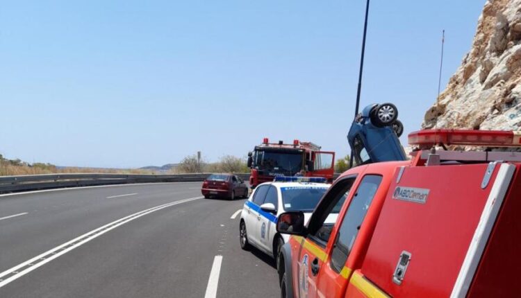Ένα ΙΧ ξέφυγε από την πορεία του «πέταξε» κυριολεκτικά στον αέρα, πέρασε το τσιμεντένιο τοιχίο και κατέληξε τουμπαρισμένο δίπλα στα βράχια. Σύμφωνα με τις πρώτες πληροφορίες οι πυροσβέστες απεγκλώβισαν από το ΙΧ ένα άτομο, ελαφρά τραυματισμένο.