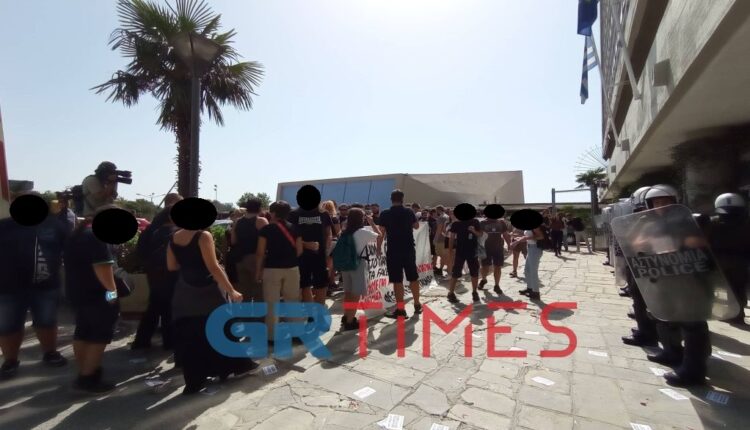 Κρατώντας πανό συγκεντρώθηκαν μπροστά από το Κτίριο Διοίκησης του Πανεπιστημίου όπου φώναξαν συνθήματα διαμαρτυρόμενοι για την παρουσία αστυνομικών στο Ίδρυμα και κατά της διοίκησης του Αριστοτελείου.