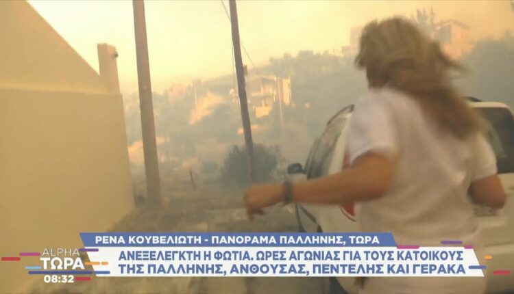 Δραματικές στιγμές έζησε η δημοσιογράφος του ALPHA Ρένα Κουβελιώτη η οποία κάλυπτε τις εξελίξεις με τη φωτιά στο Πανόραμα Παλλήνης το πρωί της Τετάρτης.