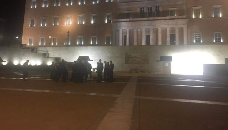 Για λόγους ασφαλείας απομακρύνθηκαν από το σημείο οι Εύζωνες, ενώ ο ευρύτερος χώρος αποκλείστηκε από ισχυρές αστυνομικές δυνάμεις.