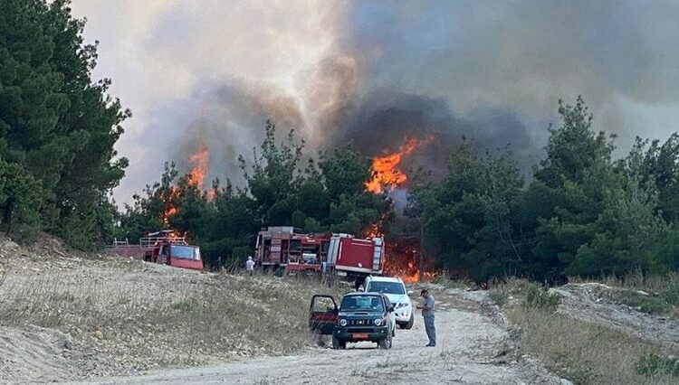 Οι άνεμοι στην περιοχή παραμένουν ασθενείς, ωστόσο το έργο της κατάσβεσης δυσχεραίνει η ευφλεκτότητα της υφιστάμενης βλάστησης που αποτελείται κυρίως από πεύκα.