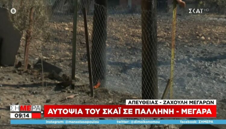 Μάλιστα, η τηλεόραση του ΣΚΑΪ, η οποία πραγματοποιεί αυτοψία στο σημείο, αποκάλυψε μία ενεργή εστία φωτιάς, η οποία βρίσκεται σε μία κολώνα της ΔΕΗ και καίει ακόμα.