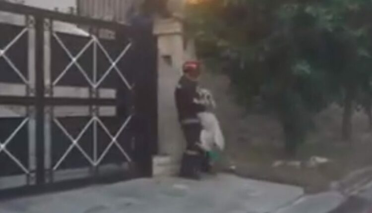 Σύμφωνα με όσα μεταδίδει ο Alpha, εθελοντής στο Ντράφι άκουσε γαβγίσματα και πήδηξε τον φράχτη. Με τα χέρια του σήκωσε έναν μεγαλόσωμο σκύλο από τον φράχτη και τον έδωσε σε έναν πυροσβέστη στην άλλη πλευρά.
