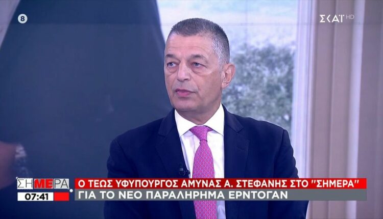 Ειδικότερα, μιλώντας στην τηλεόραση του ΣΚΑΪ, ο κ. Στεφανής, αναφερόμενος στις προθέσεις του κ. Ερντογάν, τόνισε ότι «κανείς δεν μπορεί να τις προβλέψει, αλλά σχεδιάζονται αντιδράσεις».