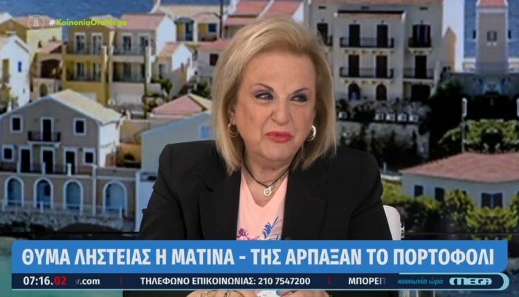 Θύμα κλοπής έπεσε η πρόεδρος της ΕΙΝΑΠ, Ματίνα Παγώνη, κοντά στο σπίτι της το μεσημέρι της Πέμπτης (15/09/2022).