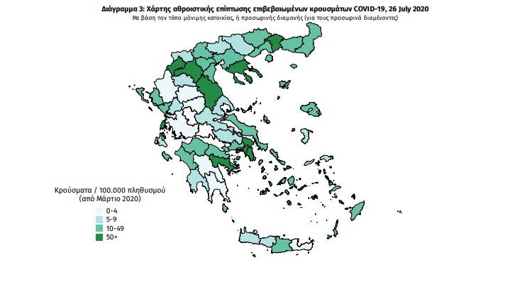 Δείτε τη γεωγραφική κατανομή με τα κρούσματα στην Ελλάδα.