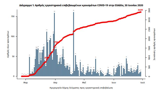Από την 1η Ιανουαρίου 2020 μέχρι σήμερα, στα εργαστήρια που διενεργούν ελέγχους για τον νέο κορονοϊό (SARS-CoV-2) και που δηλώνουν συστηματικά στον ΕΟΔΥ το σύνολο των δειγμάτων που ελέγχουν (θετικά και αρνητικά), έχουν συνολικά ελεγχθεί 312775 κλινικά δείγματα, εκ των οποίων τα 5508 (1.8%) ήταν θετικά στον κορονοϊό (συμπεριλαμβάνονται και περισσότερα από ένα δείγματα ανά άτομο που ελέγχθηκε).