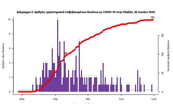 Τέλος, έχουμε έναν ακόμα καταγεγραμμένο θάνατο,καθώς έχασε την μάχη με τον θάνατο 79χρονος που νοσηλευόταν στη ΜΕΘ του Νοσοκομείου Αττικόν και συνολικά 192 θανάτους σε ολόκληρη τη χώρα, εκ των οποίων 61 (31.8%) γυναίκες και οι υπόλοιποι άνδρες.