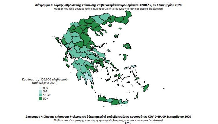 - 25 κρούσματα στην Π.Ε. Πέλλας, εκ των οποίων 8 συνδέονται με συρροή, ενώ 1 αναφέρει πρόσφατο ταξίδι στο εσωτερικό της χώρας
