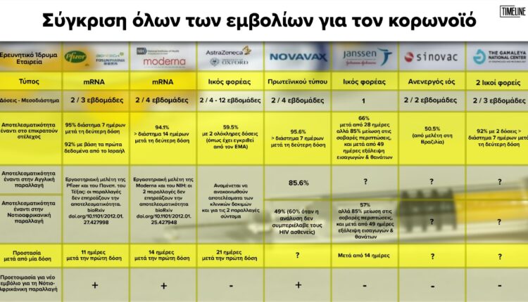 Ένα πίνακα με απλή συγκριτική μελέτη των επτά εμβολίων κατά του νέου κορωνοϊού και κάποια στοιχεία για την αποτελεσματικότητα στο επικρατούν στέλεχος και τις δύο σημαντικές παραλλαγές παρουσίασε σε ανάρτηση του στο Facebook ο καθηγητής Πολιτικής της Υγείας Ηλίας Μόσιαλος της Σχολής Οικονομικών και Πολιτικών Επιστημών του Λονδίνου (LSE).